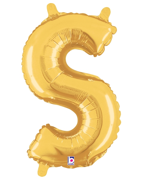 Globo dorado con la letra S de Betallic de 14 pulgadas lleno de aire