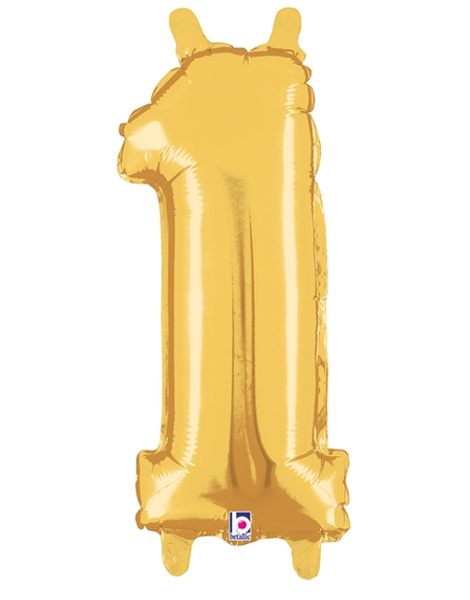 Globo número 1 dorado lleno de aire betálico de 14 pulgadas