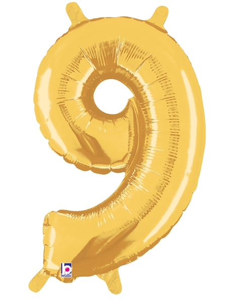 Globo número 9 dorado lleno de aire betálico de 14 pulgadas