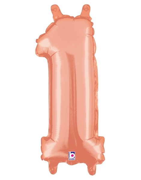 Globo número 1 de oro rosa lleno de aire Betallic de 14 pulgadas