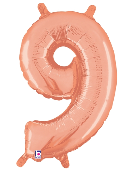 Globo número 9 de oro rosa relleno de aire Betallic de 14 pulgadas