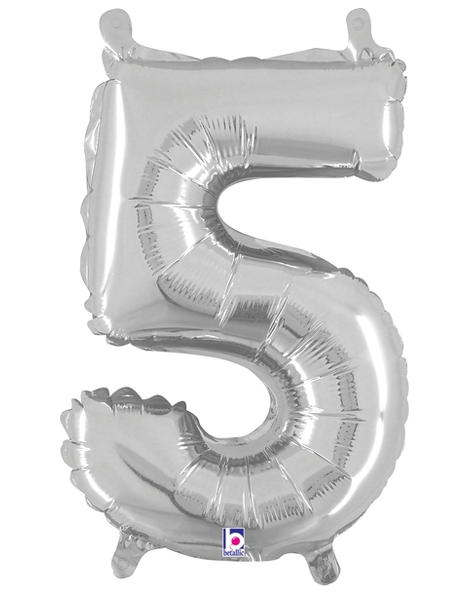 Globo plateado número 5 lleno de aire Betallic de 14 pulgadas