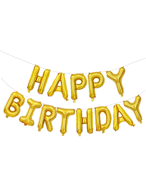 Globo de pancarta con letras de feliz cumpleaños dorado de 16 pulgadas