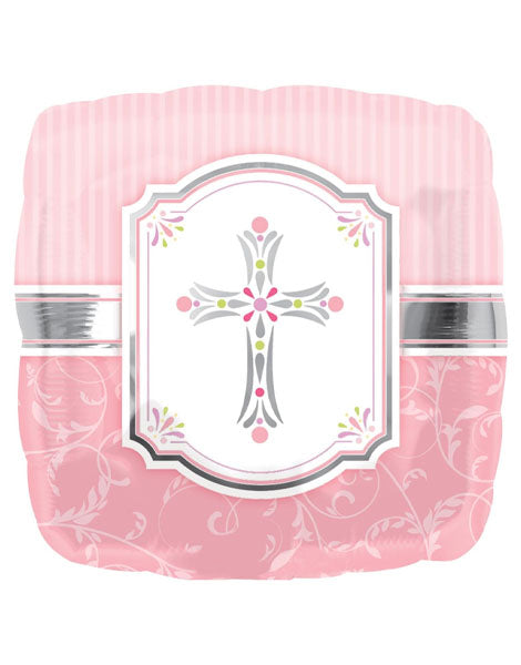 Globo rosa con anagrama de bendiciones de comunión de 18 pulgadas