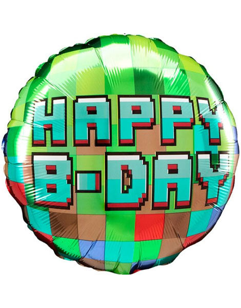 Globo de píxeles de feliz cumpleaños con anagrama de 18 pulgadas