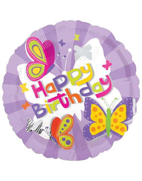 Globo de cumpleaños con mariposa arcoíris ValuePlus de 18 pulgadas