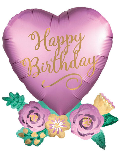 Globo de satén con forma de corazón de 30 pulgadas con anagrama para cumpleaños
