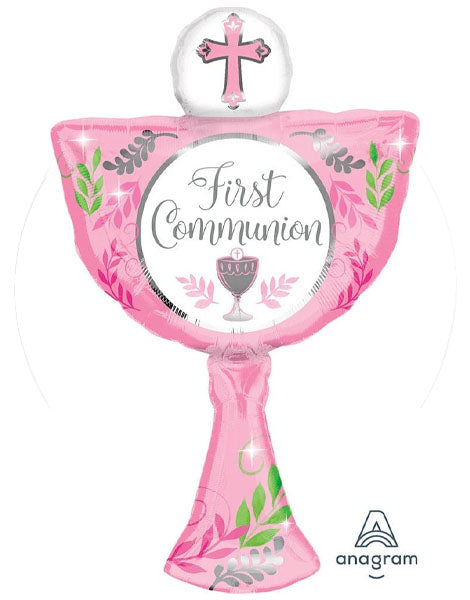Globo rosa de primera comunión con anagrama de 31 pulgadas para niña