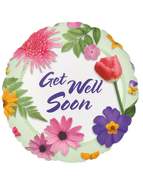 Globo con anagrama de 32 pulgadas con flores "Mejórate pronto"