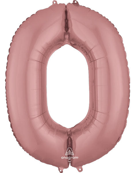 Globo con anagrama número 0 de oro rosa de 34 pulgadas