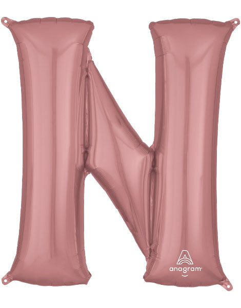 Globo con la letra N en oro rosa con anagrama de 34 pulgadas