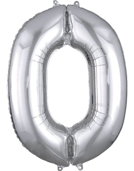 Globo plateado con anagrama número 0 de 34 pulgadas