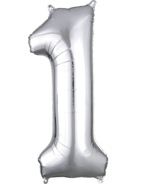 Globo plateado con anagrama número 1 de 34 pulgadas