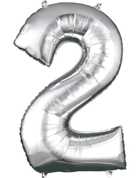 Globo plateado con anagrama número 2 de 34 pulgadas