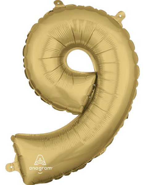 Globo con anagrama de oro blanco y número 9 de 34 pulgadas