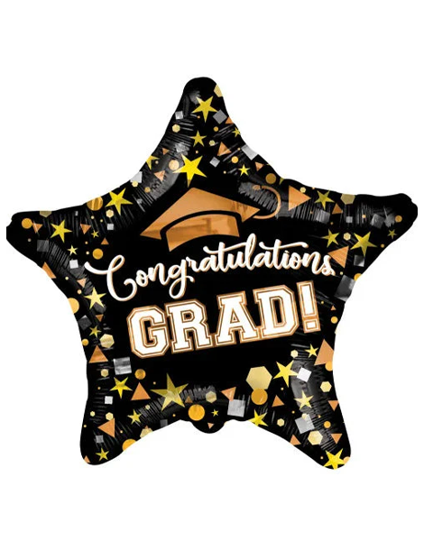 Globo de estrella negro y dorado "Felicitaciones Graduado" de ConverUSA de 4 pulgadas (se requiere sellado térmico)