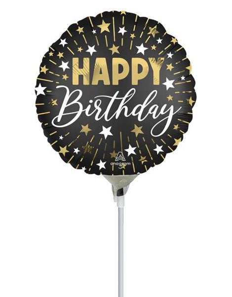 Globo HBD de 9 pulgadas con anagrama satinado, negro, dorado y plateado (se requiere sellado térmico)