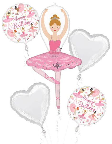 Ramo de globos para cumpleaños de niña bailarina con anagrama (5 unidades)