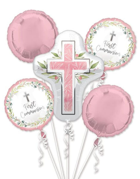 Globos de ramo rosa Anagrama Mi Primera Comunión 5 piezas