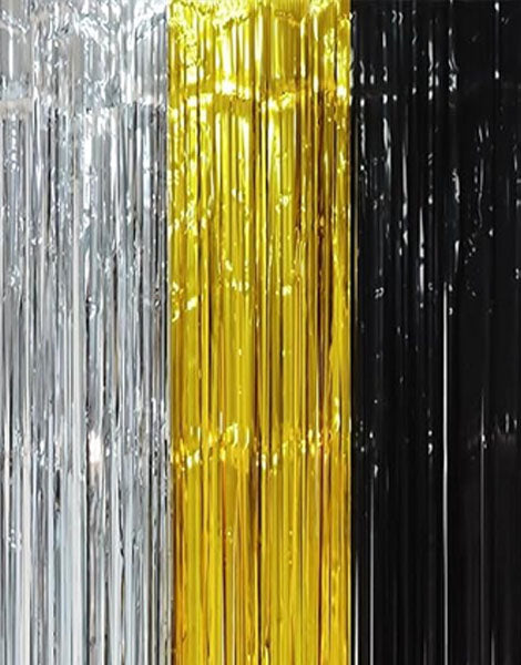 Cortina SoNice de lámina negra, dorada y plateada de 2,4 m