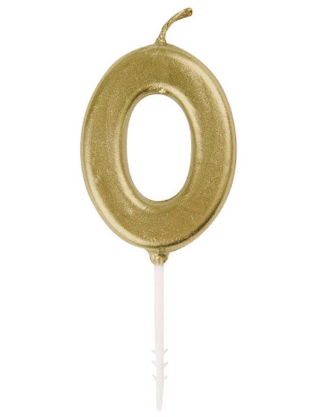 Vela única en miniatura dorada con el número 0