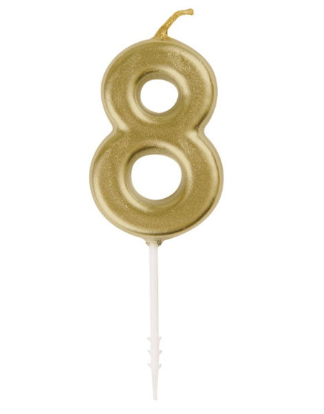 Vela única en miniatura dorada con el número 8