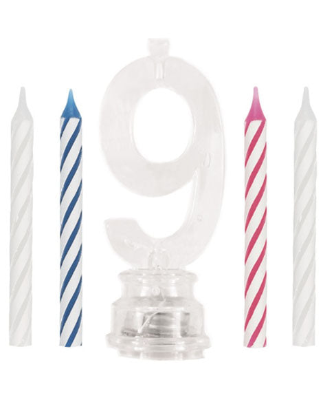 Set único de vela de cumpleaños y adorno para tarta con número 9 parpadeante multicolor