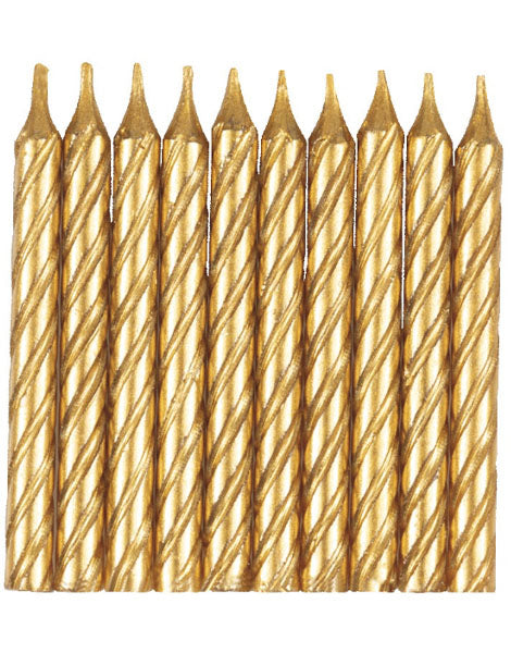 Velas de cumpleaños únicas en espiral doradas (10 unidades)