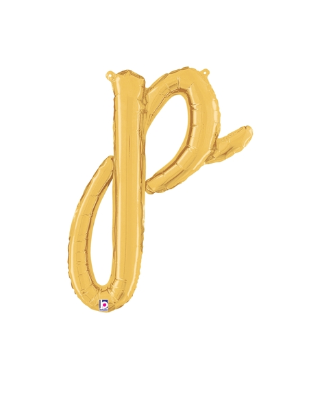 14in Betallic Air-Filled Gold Script Letter p Balloon