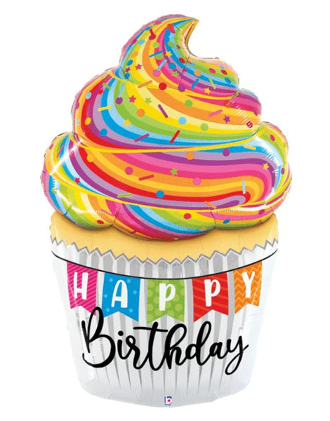 60in Betallic Happy Birthday Special Delivery Cupcake Balloon