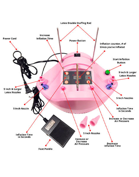 - With the time controller and speed controller, you can adjust the inflating time and the speed according to the balloon.