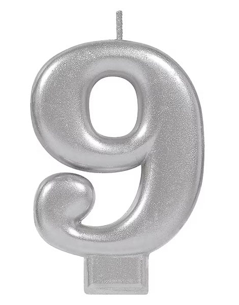 Silver Number 9 Candle